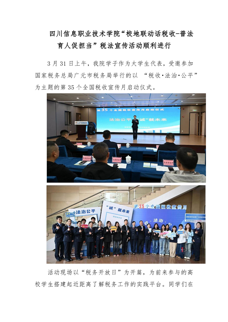 四川信息职业技术学院“校地联动话税收-普法育人促担当”税法宣传活动顺利进行