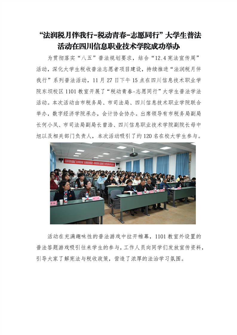 法润税月伴我行-税动青春-志愿同行”大学生普法活动在四川信息职业技术学院成功举办